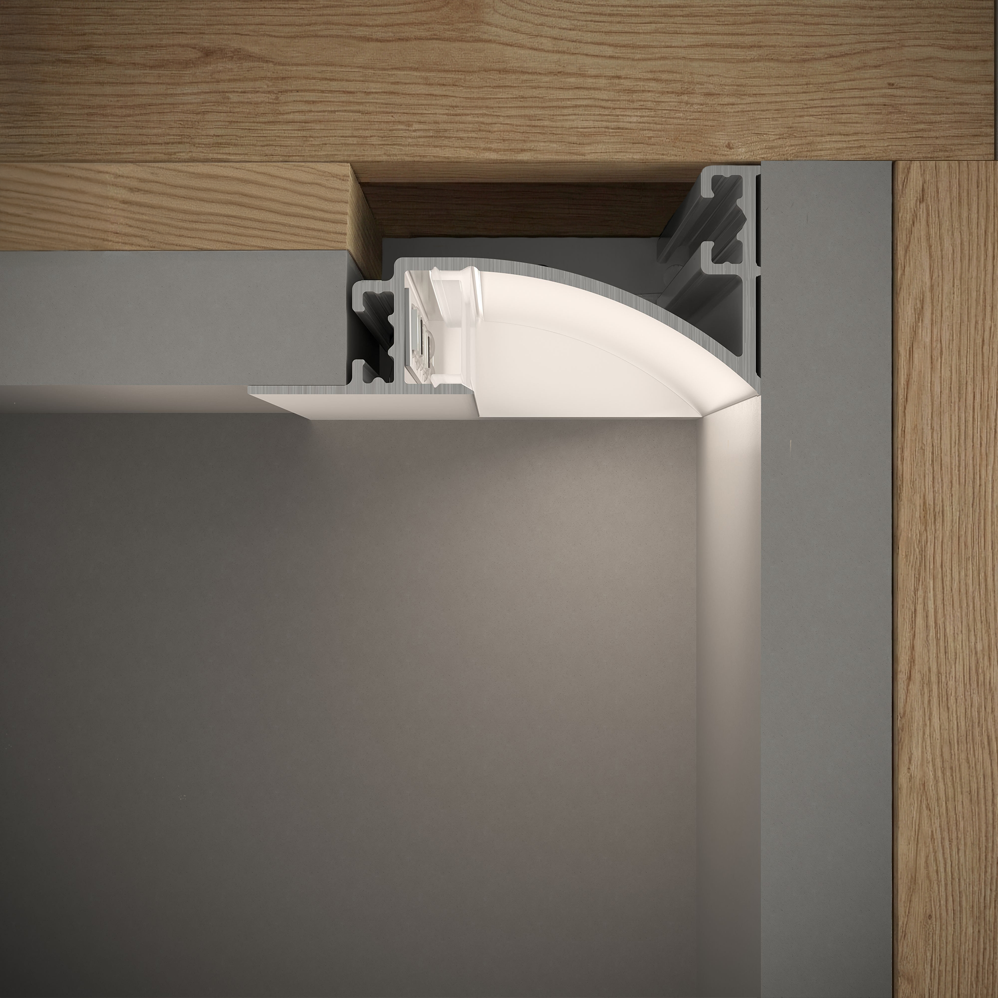 Ankr Perimeter 1 in. is a compact ceiling-mounted recessed cove channel with an illuminated reveal. It features a soft indirect light designed to flood a wall with light.