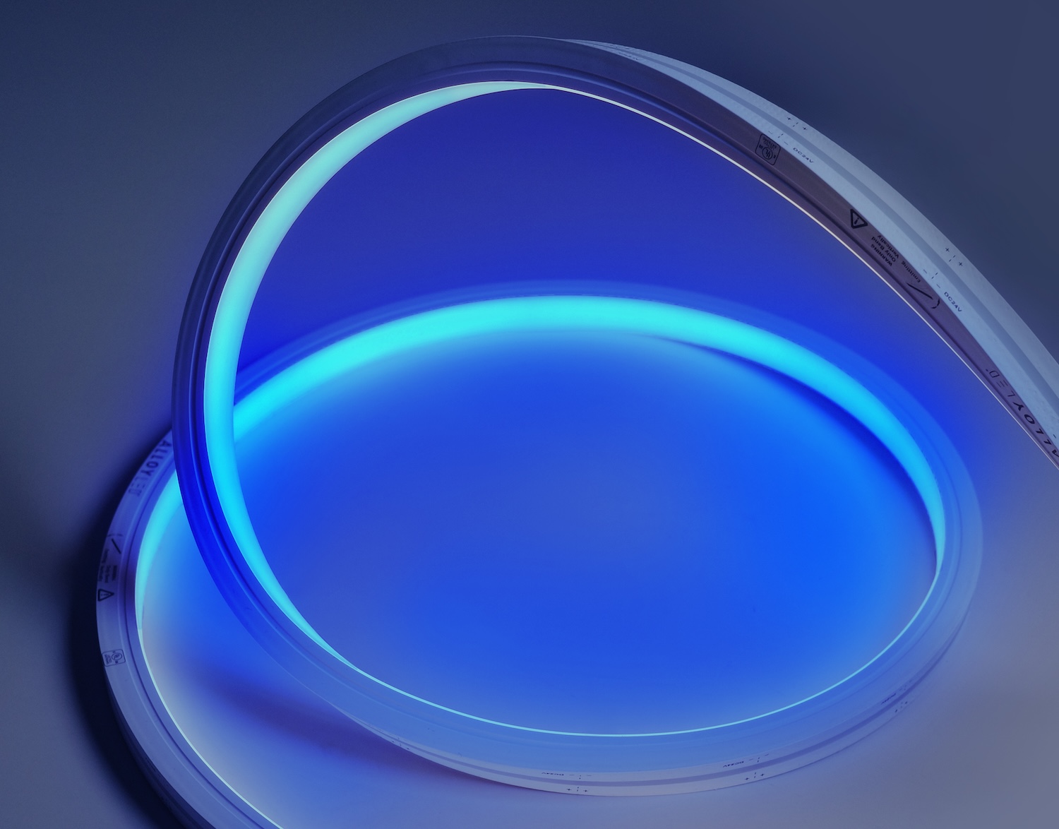 Radiulux Neon RGBW LED Tape Light is the next generation of color-changing, flexible linear lighting, which faithfully replicates the look of traditional neon. With a rugged and super-flexible silicone housing, Radiulux Neon offers an ultimate number of design options with 100% hotspot-free lighting and a tight bend radius in both top-bending and side-bending applications. With an IP67 rating and silicone end caps, it can be used for dynamic curved installations with continuous and even lighting in both indoor and outdoor locations in dry and wet conditions.